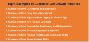 There you have it, eight examples of Customer-Led Growth initiatives. I could go on but this covers the breadth of market-facing challenges that companies face today.